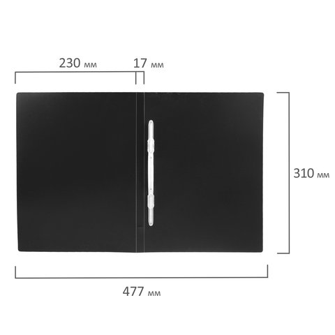 Папка с пластиковым скоросшивателем BRAUBERG "Office", черная, до 100 листов, 0,5 мм, 222645