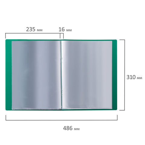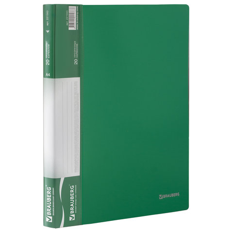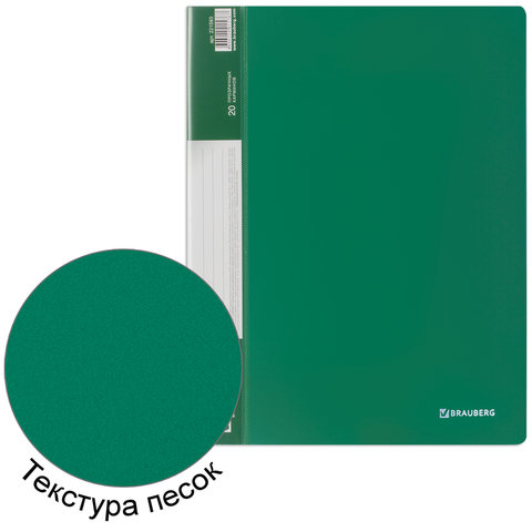 Папка 20 вкладышей BRAUBERG стандарт, зеленая, 0,6 мм, 221593
