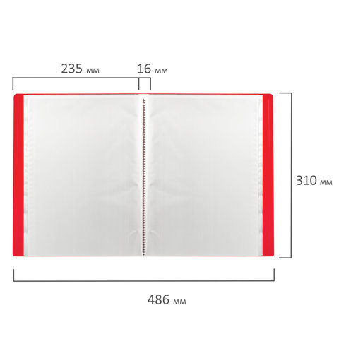 Папка 20 вкладышей STAFF, эконом, красная, 0,5 мм, 225694