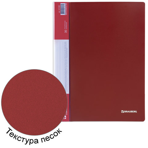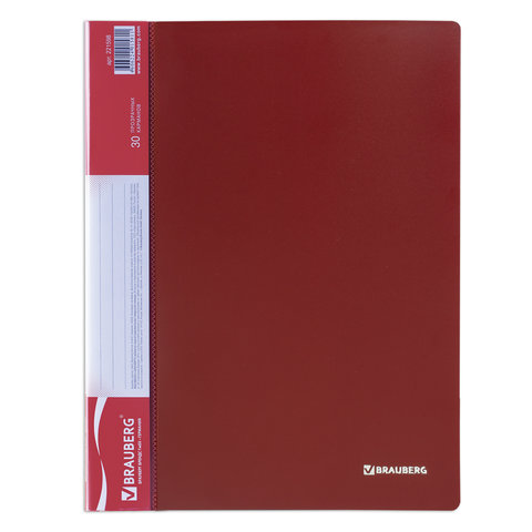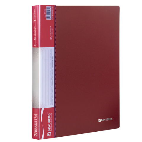 Папка 30 вкладышей BRAUBERG стандарт, красная, 0,6 мм, 221598