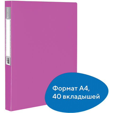 Папка 40 вкладышей BRAUBERG "Neon", 25 мм, неоновая розовая, 700 мкм, 227454