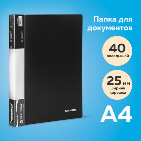 Папка 40 вкладышей BRAUBERG стандарт, черная, 0,7 мм, 221604