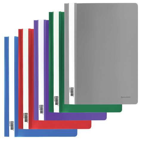 Скоросшиватель пластиковый BRAUBERG, А4, 130/180 мкм, ассорти, 221820