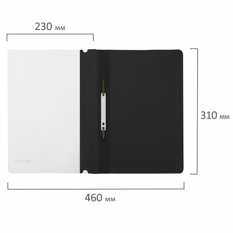 Скоросшиватель пластиковый BRAUBERG, А4, 130/180 мкм, черный, 220382
