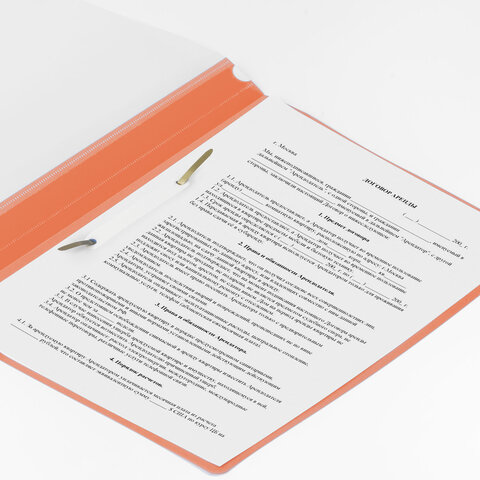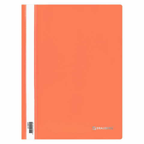 Скоросшиватель пластиковый BRAUBERG, А4, 130/180 мкм, оранжевый, 228673