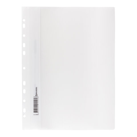 Скоросшиватель пластиковый с перфорацией BRAUBERG, А4, 140/180 мкм, белый, 226585