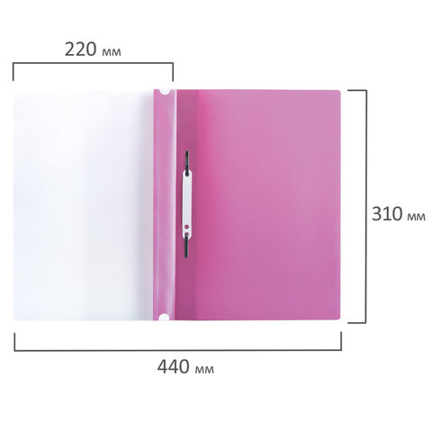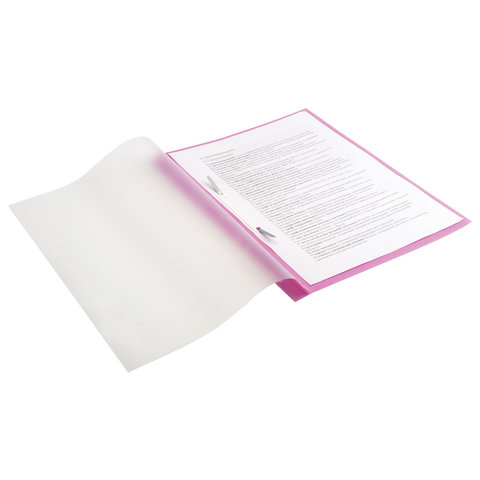 Скоросшиватель пластиковый с перфорацией BRAUBERG, А4, 140/180 мкм, розовый, 226588