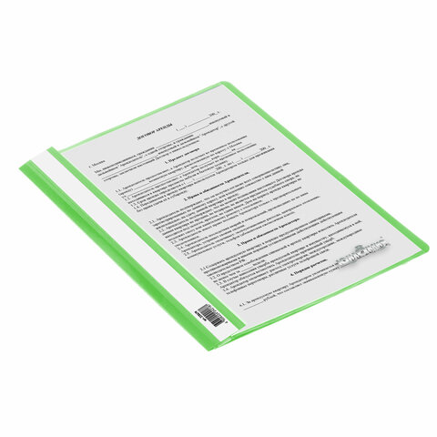 Скоросшиватель пластиковый ЮНЛАНДИЯ, А4, 130/180 мкм, салатовый, 228679