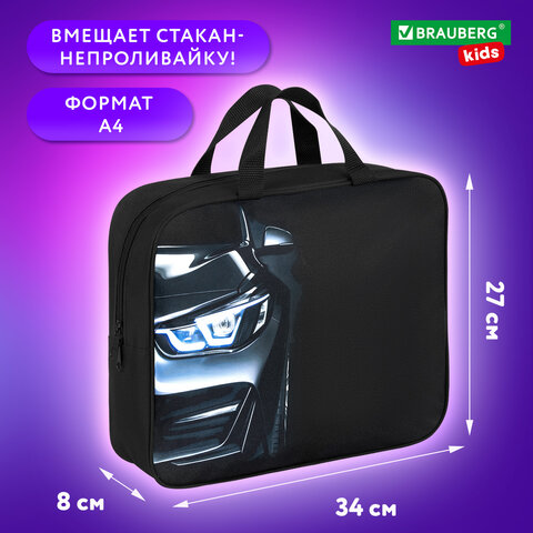 Папка на молнии с ручками BRAUBERG KIDS А4, 1 отделение, полиэстер, 80 мм, "Dark car", 273315