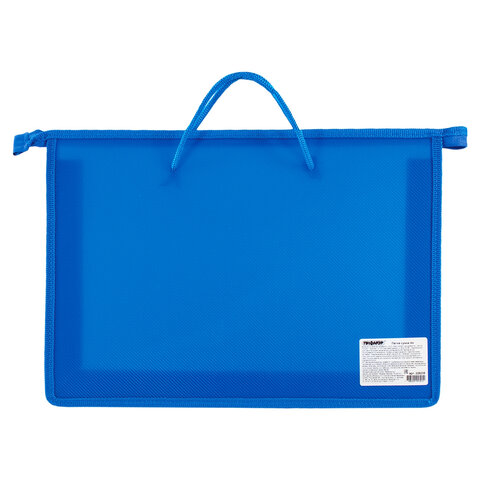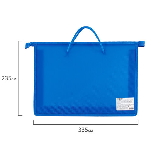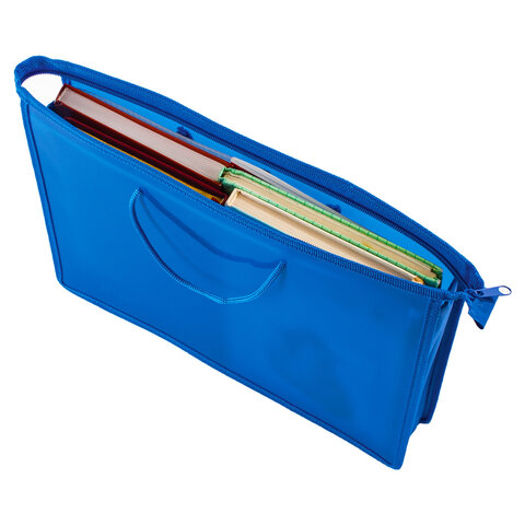 Папка на молнии с ручками ПИФАГОР, А4, 1 отделение, пластик, 55 мм, синяя, 228235