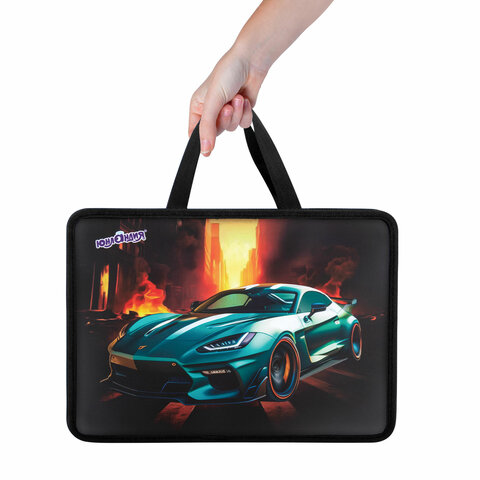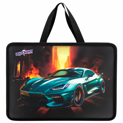 Папка на молнии с ручками ЮНЛАНДИЯ А4, 1 отделение, пластик, 80 мм, "Fire car", 272155