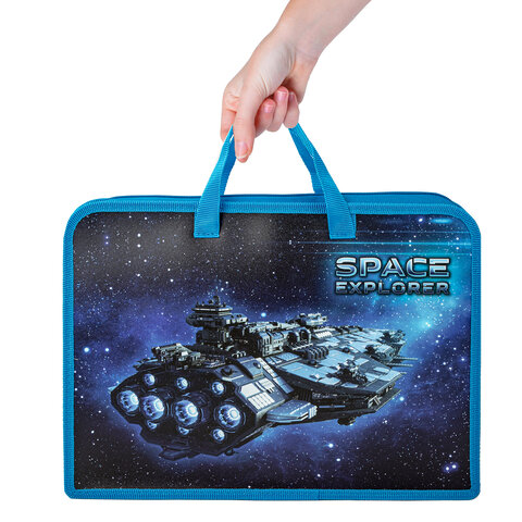 Папка на молнии с ручками ЮНЛАНДИЯ А4, 1 отделение, пластик, ширина 45 мм, "Space explorer", 270949