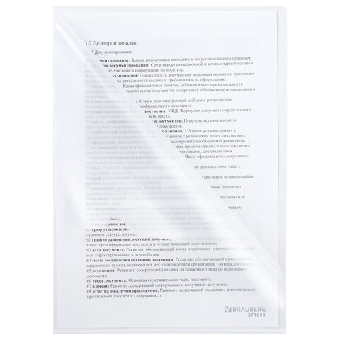 Папка-уголок А4, прозрачная, 0,10 мм, BRAUBERG EXTRA, 271698