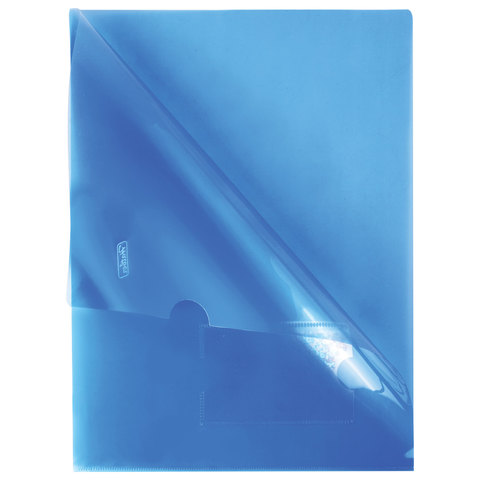 Папка-уголок с карманом для визитки, А4, синяя, 0,18 мм, AGкм4 00102, V246955