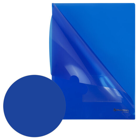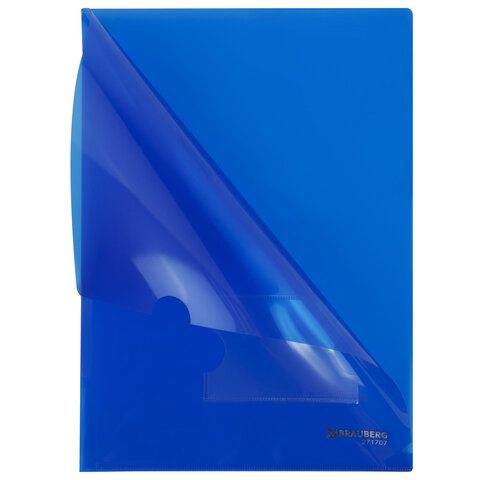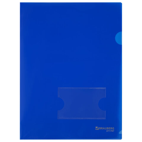 Папка-уголок с карманом для визитки А4, синяя, 0,18 мм, BRAUBERG EXTRA, 271707