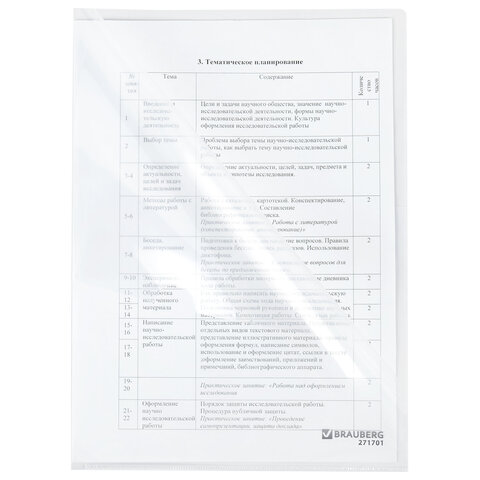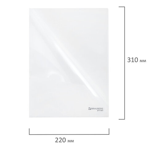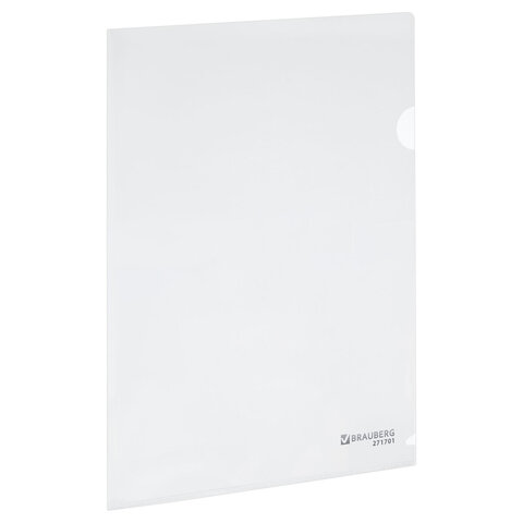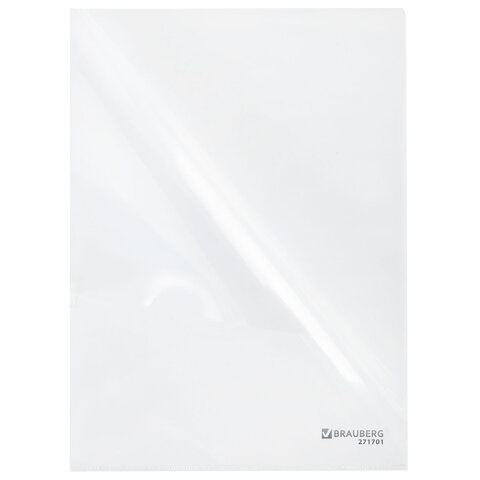 Папка-уголок жесткая А4, прозрачная, 0,15 мм, BRAUBERG EXTRA, 271701