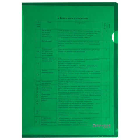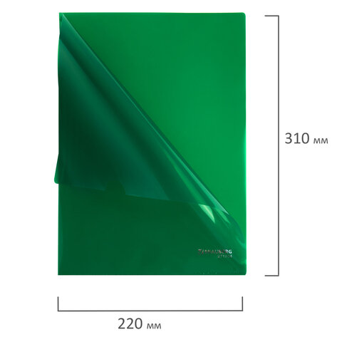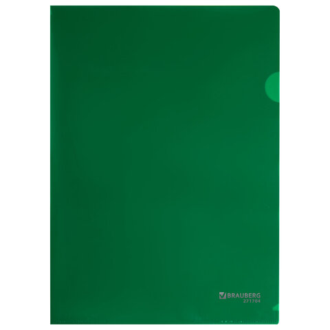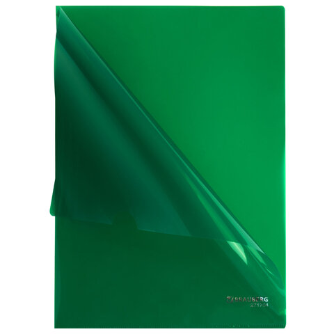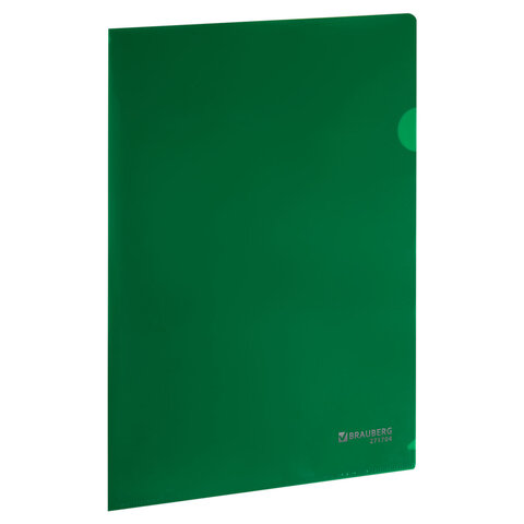 Папка-уголок жесткая А4, зеленая, 0,15 мм, BRAUBERG EXTRA, 271704
