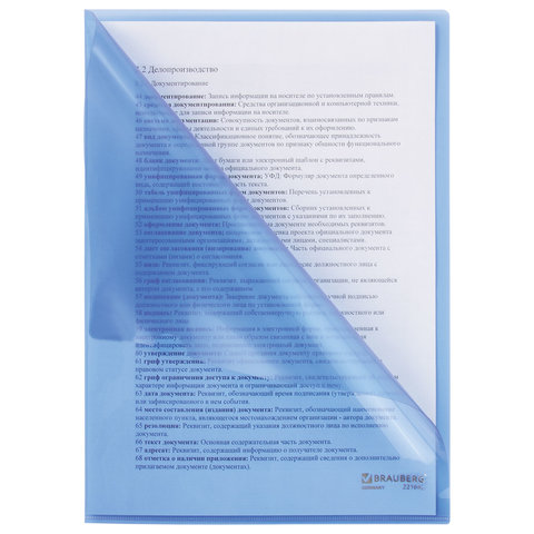 Папка-уголок BRAUBERG предназначена для хранения и транспортировки документов и является незаменимым атрибутом для студента, школьника или офисного работника.