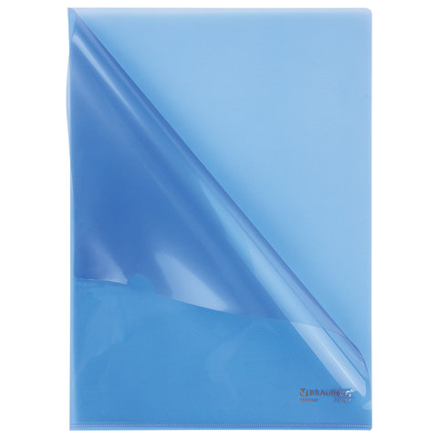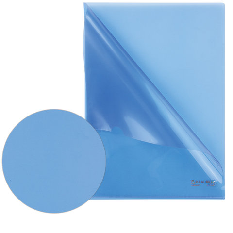 Папка-уголок жесткая BRAUBERG, синяя, 0,15 мм, 221642
