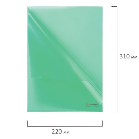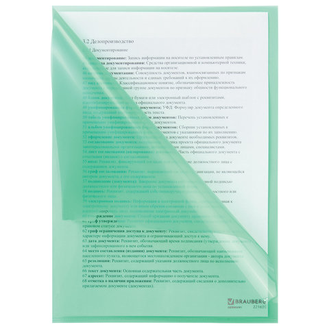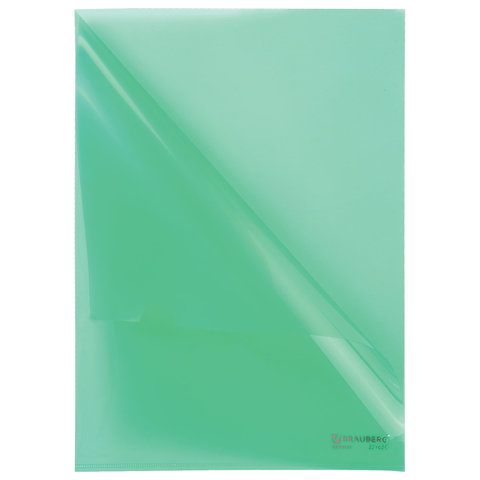 Папка-уголок жесткая BRAUBERG, зеленая, 0,15 мм, 221639