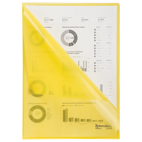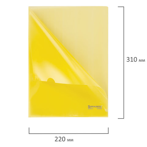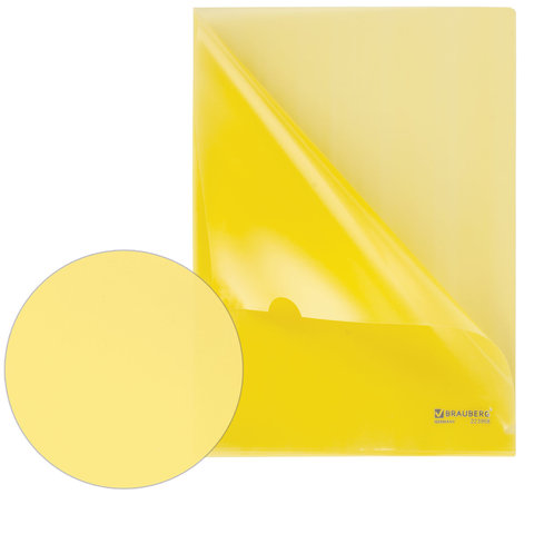 Папка-уголок жесткая BRAUBERG, желтая, 0,15 мм, 223968