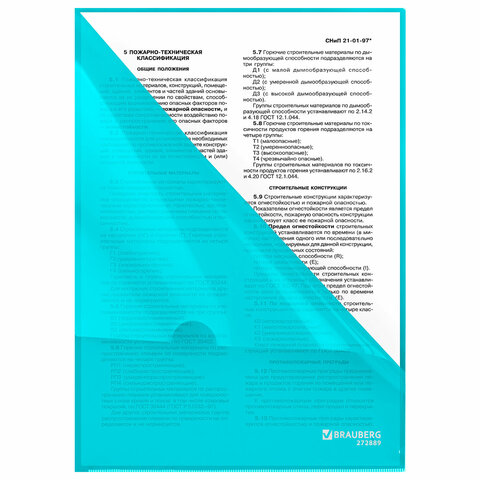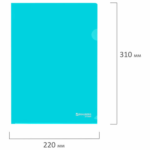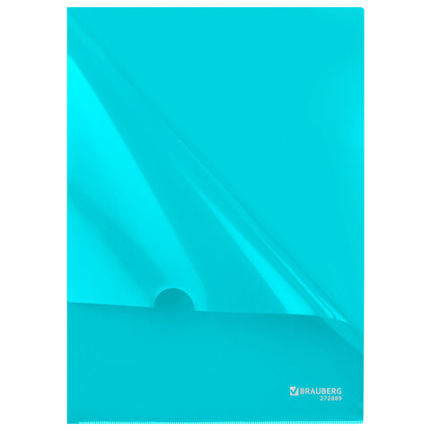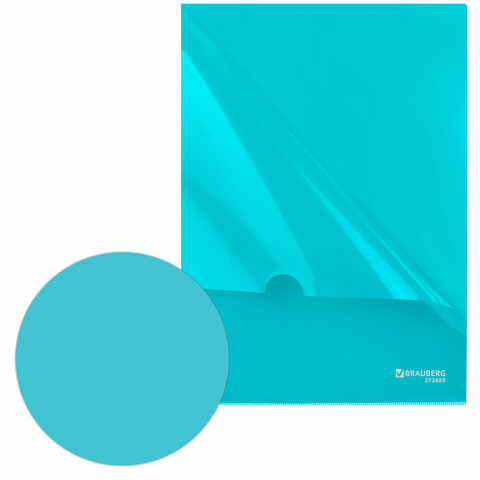 Папка-уголок жесткая, непрозрачная, А4, цвет аквамарин, 0,15 мм, BRAUBERG PASTEL, 272889