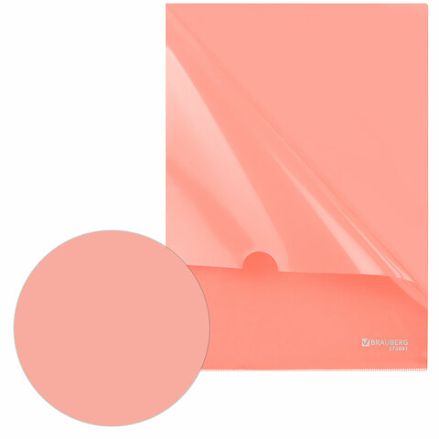 Папка-уголок жесткая, непрозрачная, А4, цвет персиковый, 0,15 мм, BRAUBERG PASTEL, 272891