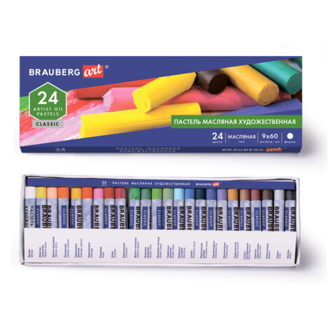 Пастель масляная художественная BRAUBERG ART CLASSIC, 24 цвета, круглое сечение, 181448