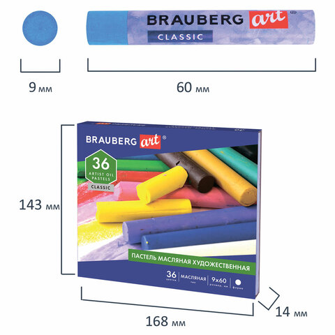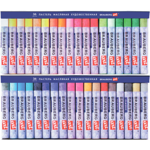 Пастель масляная художественная BRAUBERG ART CLASSIC, 36 цветов, круглое сечение, 181449