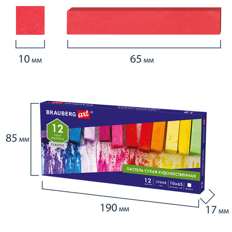 Пастель сухая художественная BRAUBERG ART CLASSIC, 12 цветов, квадратное сечение, 181464