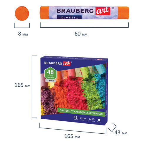 Пастель сухая художественная BRAUBERG ART CLASSIC, 48 цветов, круглое сечение, 181456