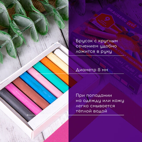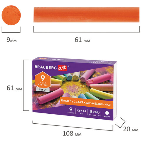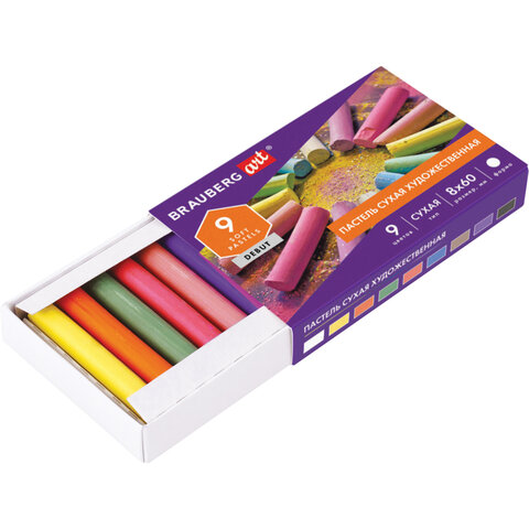 Пастель сухая художественная BRAUBERG ART DEBUT, 9 цветов, круглое сечение, 181459