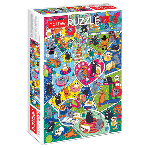Пазл картонный 1000 элементов АССОРТИ, 10 дизайнов, 480х680 мм, HATBER