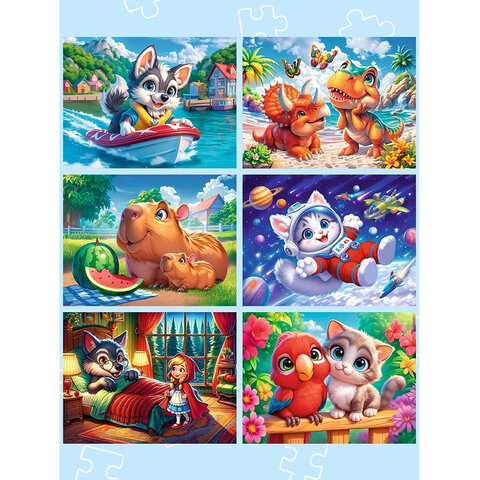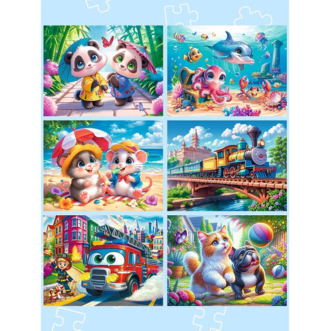 Пазл картонный "Милые картинки", 12 элементов, АССОРТИ, поле 17,5х13 см, 20 видов, РК