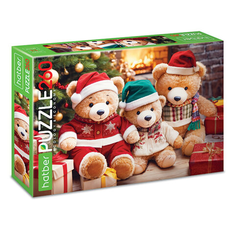 Пазл картонный НОВОГОДНИЙ 260 элементов АССОРТИ, 220х330 мм, HATBER