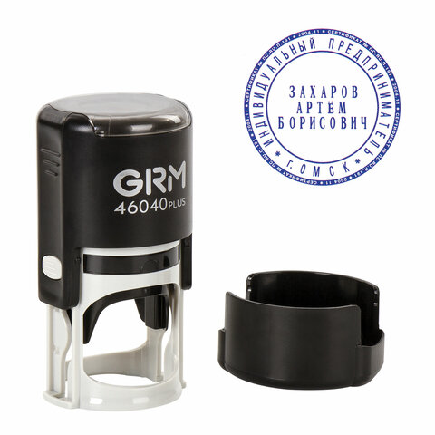Печать самонаборная 1 круг, оттиск D=40 мм синий, GRM 46040, крышка, КАССА В КОМПЛЕКТЕ, 111000000