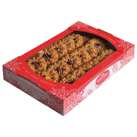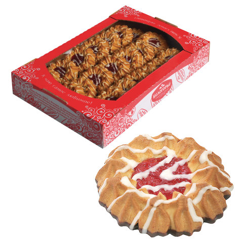 Необыкновенно вкусное сдобное печенье с нежным фруктовым конфитюром, декорированное белой глазурью. Продукция производится из высококачественного сырья, без применения генетически модифицированных продуктов.