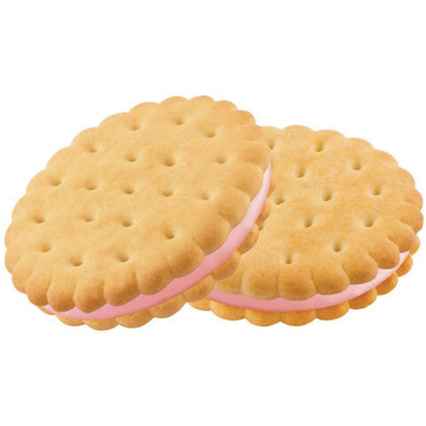 Рассыпчатое затяжное печенье с нежной кремово-клубничной прослойкой.