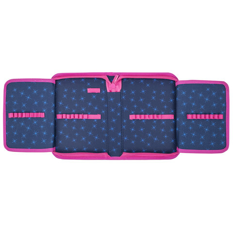 Тканевый пенал BRAUBERG стандартного размера с одним отделением и двумя откидными планками. Удобная молния с трех сторон с металлическим бегунком, прочные резинки для предметов. Вмещает до 35 предметов.