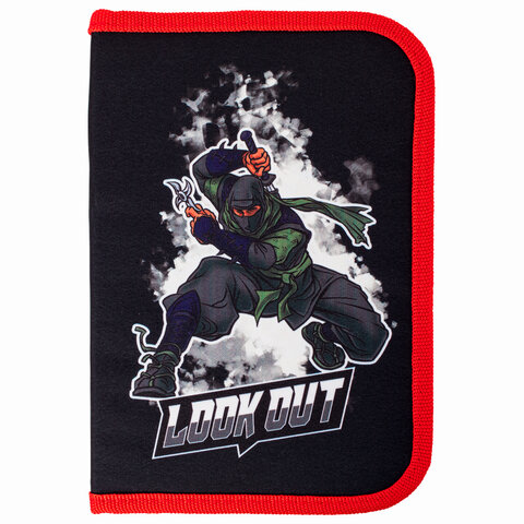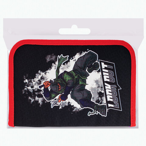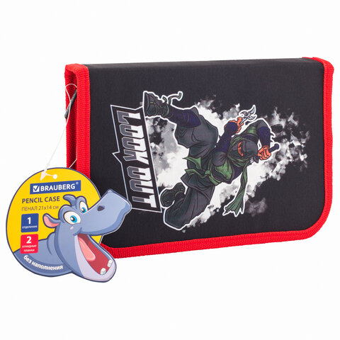 Пенал BRAUBERG, 1 отделение, 2 откидные планки, полиэстер, 21х14 см, "Ninja", 270313