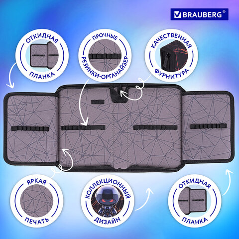 Пенал BRAUBERG, 1 отделение, 2 откидные планки, полиэстер, 21х14 см, "UFO", 271516