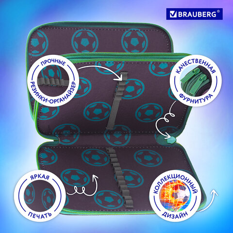 Пенал BRAUBERG, 2 отделения, полиэстер, 21х14 см, "Fire football", 270322