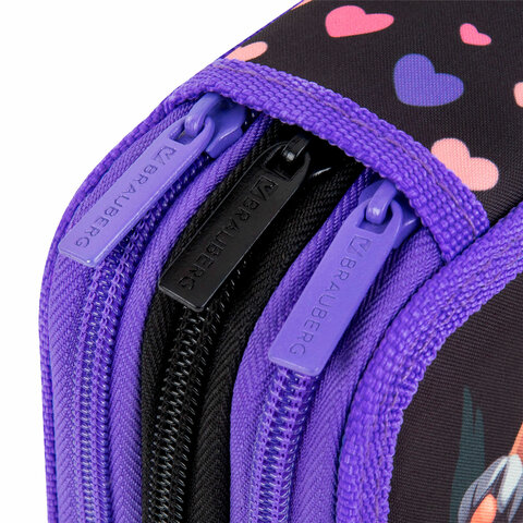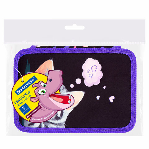 Пенал BRAUBERG, 3 отделения, полиэстер, 21х14 см, "Sleeping kitten", 273538