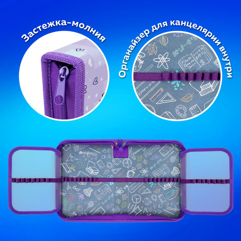 Пенал ПИФАГОР с 1 отделением, с 2 откидными планками. Удобная молния с трех сторон с металлическим бегунком, прочные резинки для предметов. Вмещает до 42 предметов.