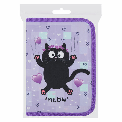 Пенал ПИФАГОР, 1 отделение, 2 откидные планки, полиэстер, 20х14 см, "Falling cat", 272287