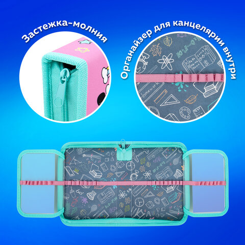 Пенал ПИФАГОР с 1 отделением, с 2 откидными планками. Удобная молния с трех сторон с металлическим бегунком, прочные резинки для предметов. Вмещает до 42 предметов.