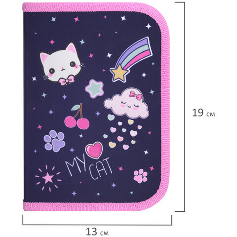 Тканевый пенал ПИФАГОР размером 19х13 см с одним отделением. Удобная молния с металлическим бегунком с трёх сторон, прочные резинки для предметов. Вмещает до 14 предметов.