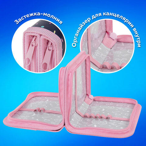 Пенал стандартного размера ПИФАГОР с двумя отделениями выполнен из ламинированного картона. Яркий дизайн. Удобные молнии с металлическим бегунком с трех сторон, прочные резинки для предметов. Вмещает до 25 предметов.