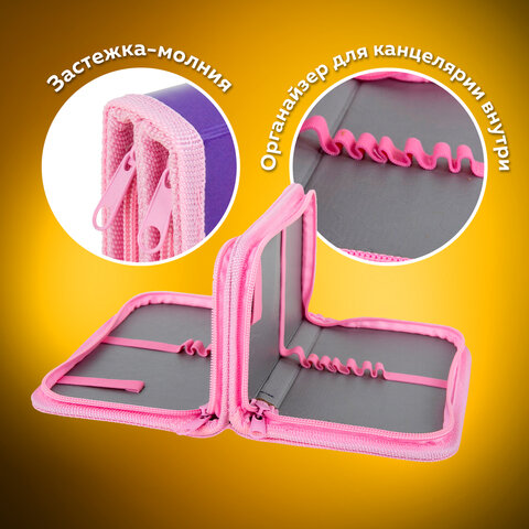 Пенал стандартного размера ПИФАГОР с двумя отделениями выполнен из ламинированного картона. Яркий дизайн. Удобные молнии с металлическим бегунком с трех сторон, прочные резинки для предметов. Вмещает до 25 предметов.