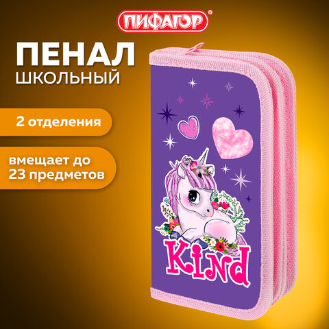 Пенал ПИФАГОР, 2 отделения, ламинированный картон, 19х11 см, "Happy Unicorn", 271533
